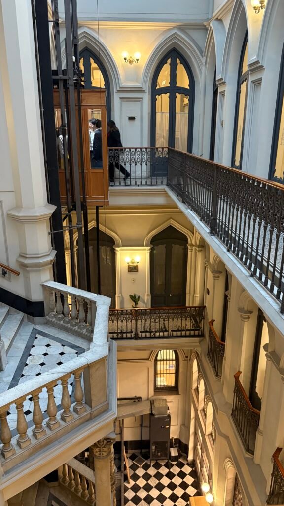 El edificio fue construido en 1875 bajo un estilo ecléctico con líneas neo góticas a cargo del arquitecto francés Ignacio Pedralbes (1866-1947).