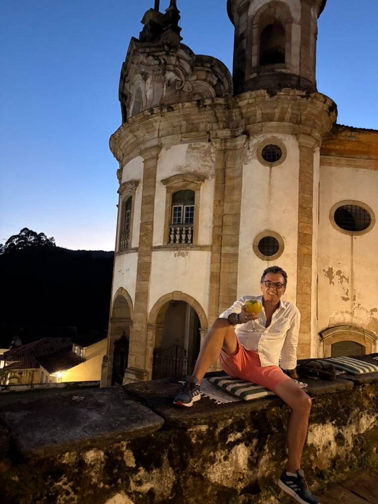 Brindar por la vida frente a la Iglesia de Nossa Senhora do Rosário, en Ouro Preto, es un pequeño berrinche de viajero. Y como todo berrinche, se disfruta sin culpa.