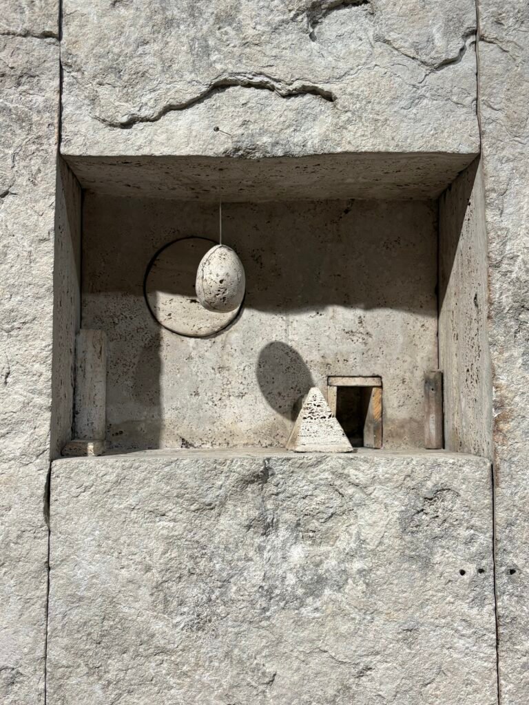 La obra no impone un relato; impone presencia. Cavidades, nichos, tensiones internas: Fonseca no esculpe la superficie, esculpe el vacío. Y en ese vacío construye sentido.