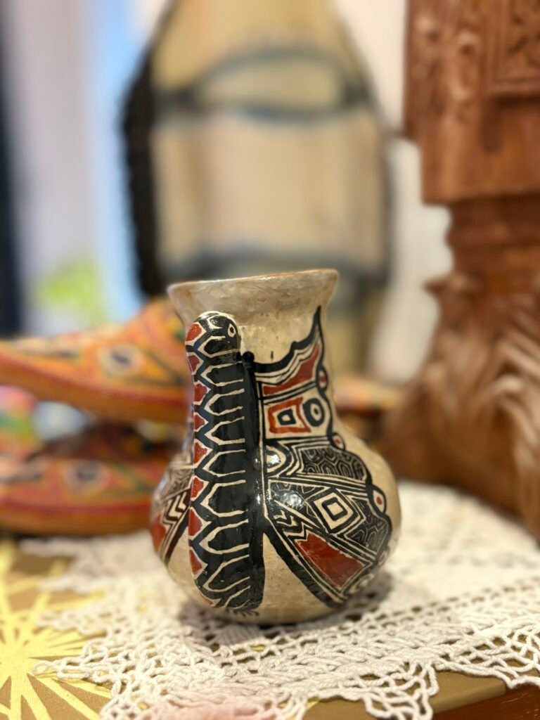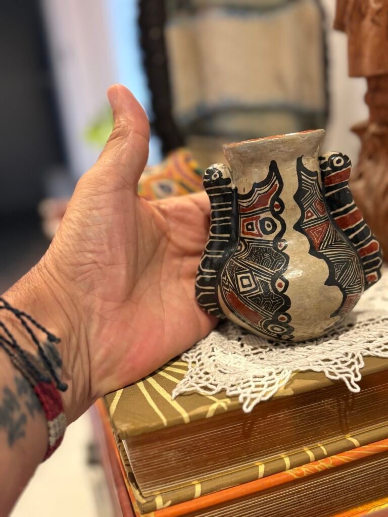 Firmada por Minam Vargas de Pastaza, (provincia amazónica de Ecuador), la vasija trae consigo algo que no suele viajar en avión: territorio.