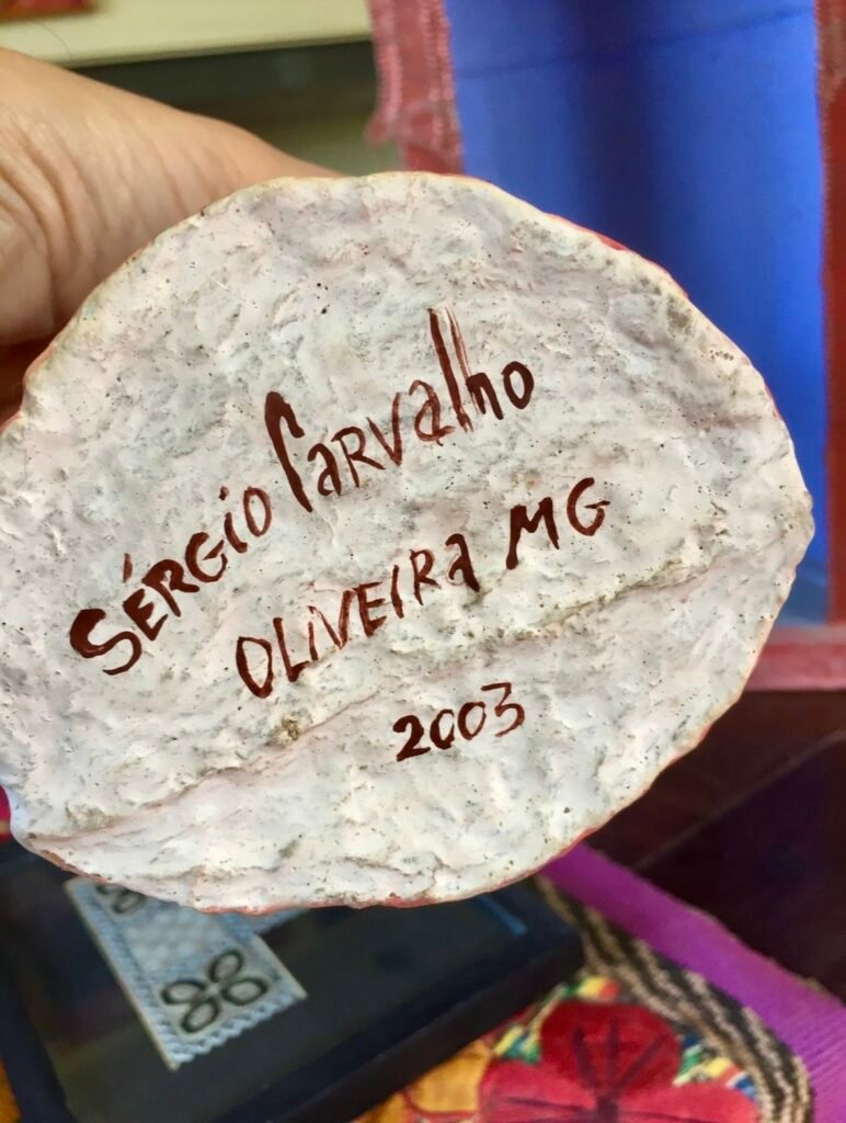 Esta Virgen adquirida en Tiradentes en uno de mis viajes por allí, pertenece a la tradición del arte popular contemporáneo de Minas Gerais, una línea que surge de la mezcla entre la imaginería colonial barroca y la sensibilidad artesanal del interior.