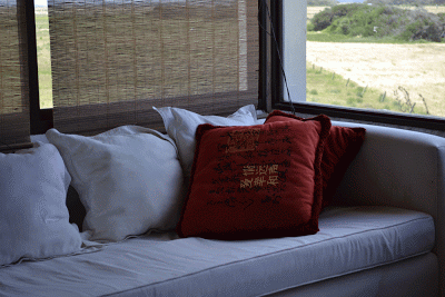 me encantaron las fotos, especialmente la biblioteca y ese sofá con los almohadones de colores…para sentarme y leer…