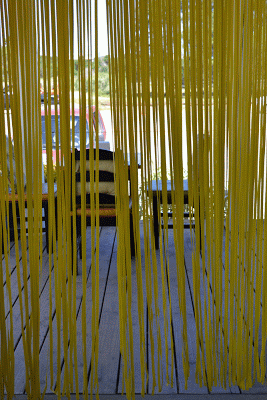 La de la cortina plástica amarilla, super!
