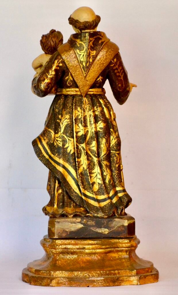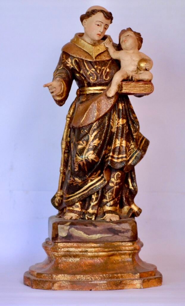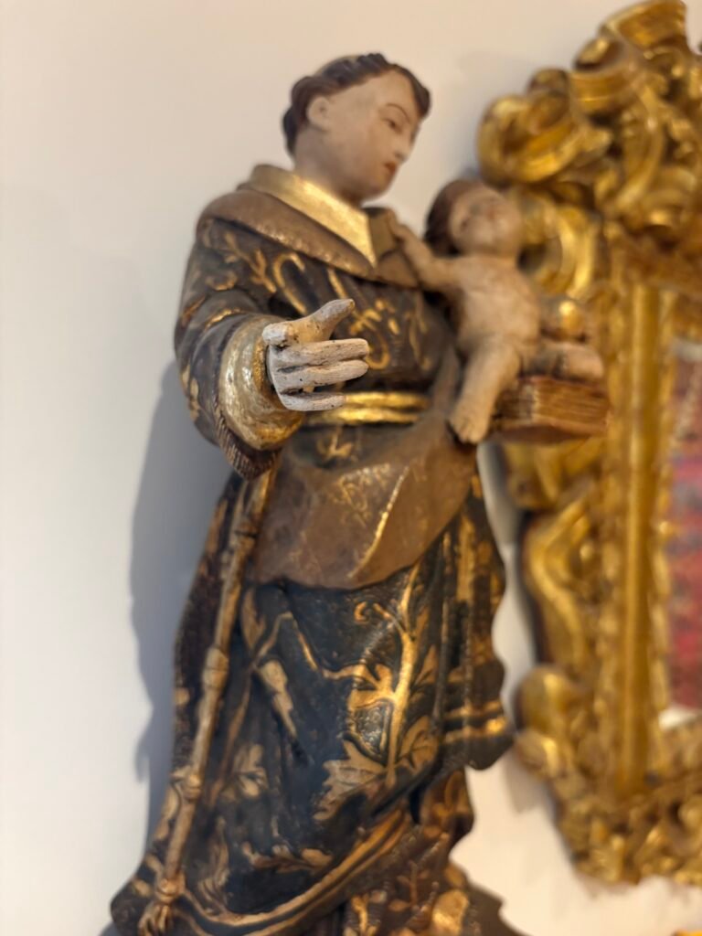 La escultura de San Antonio con el Niño se inscribe en la tradición viva de la imaginería mineira, uno de los legados más sólidos del barroco luso-brasileño.