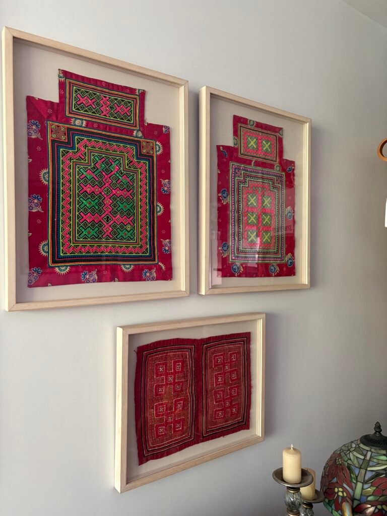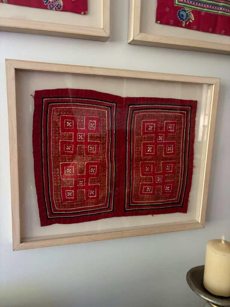 Y, todavía, protege más allá del diálogo que entabla con otras telas vietnamitas sobre mi muro.