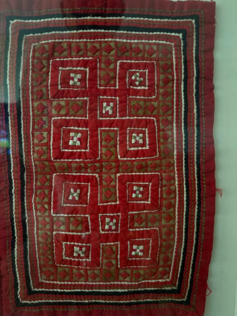 Este textil pudo haber sido panel mural, parte de una dote o cobertura protectora del espacio íntimo. Su lugar original fue la casa, no la vitrina.